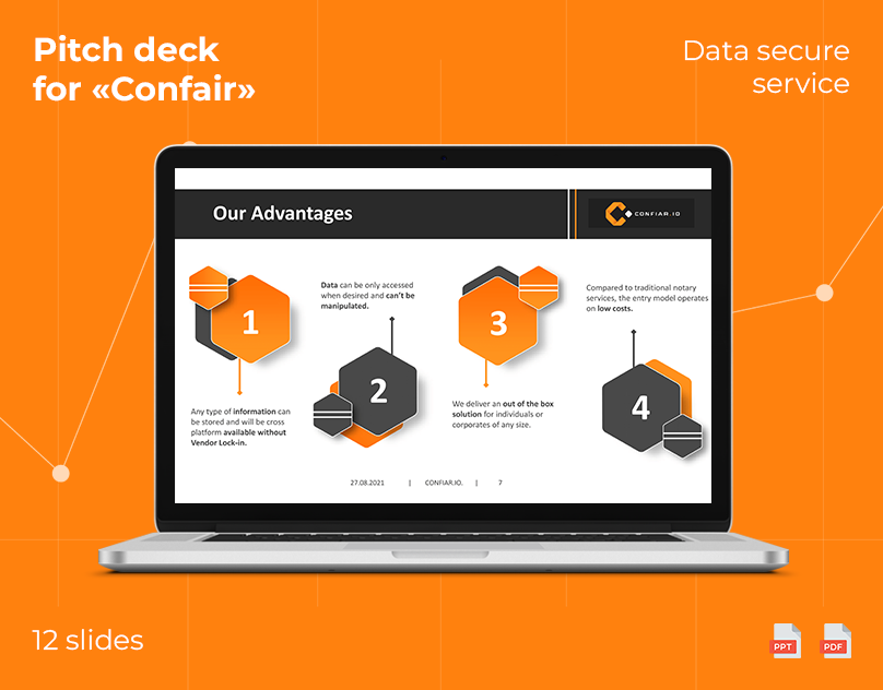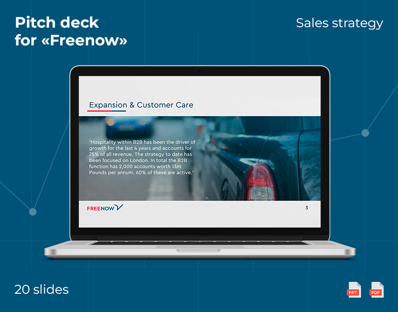 You receive the final presentation in multiple formats: editable PowerPoint, Google Slides, and a presentation-ready PDF. Plus handoff notes for future updates.